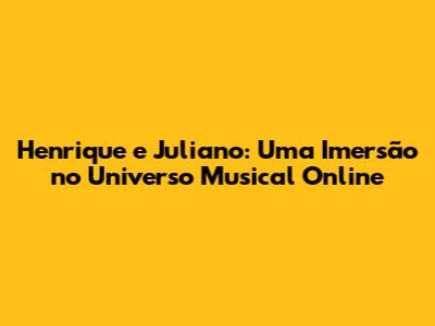 Ei, pessoal! Se você é fã de sertanejo e adora a dupla Henrique e Juliano, prepare-se para uma imersão completa no mundo deles! Neste artigo, vamos explorar como você pode curtir os shows e as músicas da dupla online, sem perder nenhum detalhe. Vamos falar sobre as plataformas, os eventos especiais e tudo o que você precisa saber para se manter conectado com esses artistas incríveis. Então, se joga com a gente nessa aventura musical!