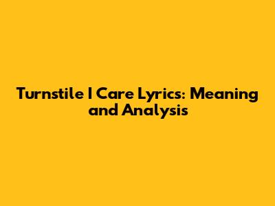 Turnstile I Care Lyrics: Meaning And Analysis